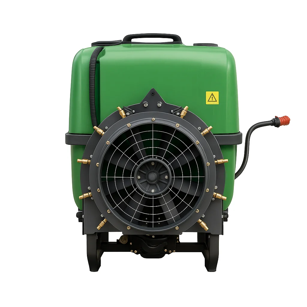 فن معکوس اتومایزر ۶: فن معکوس ۶ پره با جریان هوای متمرکز برای بهینهسازی پاشش، کاهش اتلاف سم و پوششدهی بهتر درختان بلند (عرض پاشش تا ۱۰-۱۴ متر).