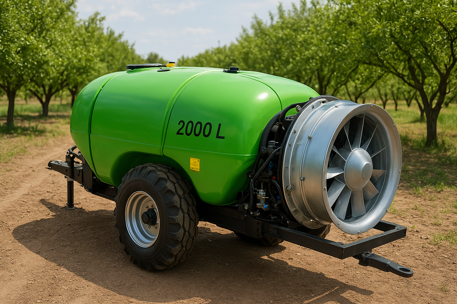 سمپاش ۱۰۰۰ لیتری باغی توربینی اتومایزر ، این سمپاش انتخاب حرفهای باغداران برای باغات کوچک تا متوسط که میخواهند سمپاشی را سریع، دقیق و با مصرف بسیار کم انجام دهند – فن توربینی قوی، پاشش اتومایزر یکنواخت، مخزن سبک و مقاوم!