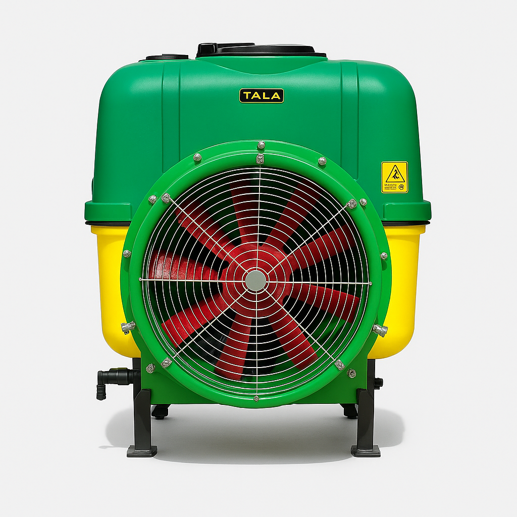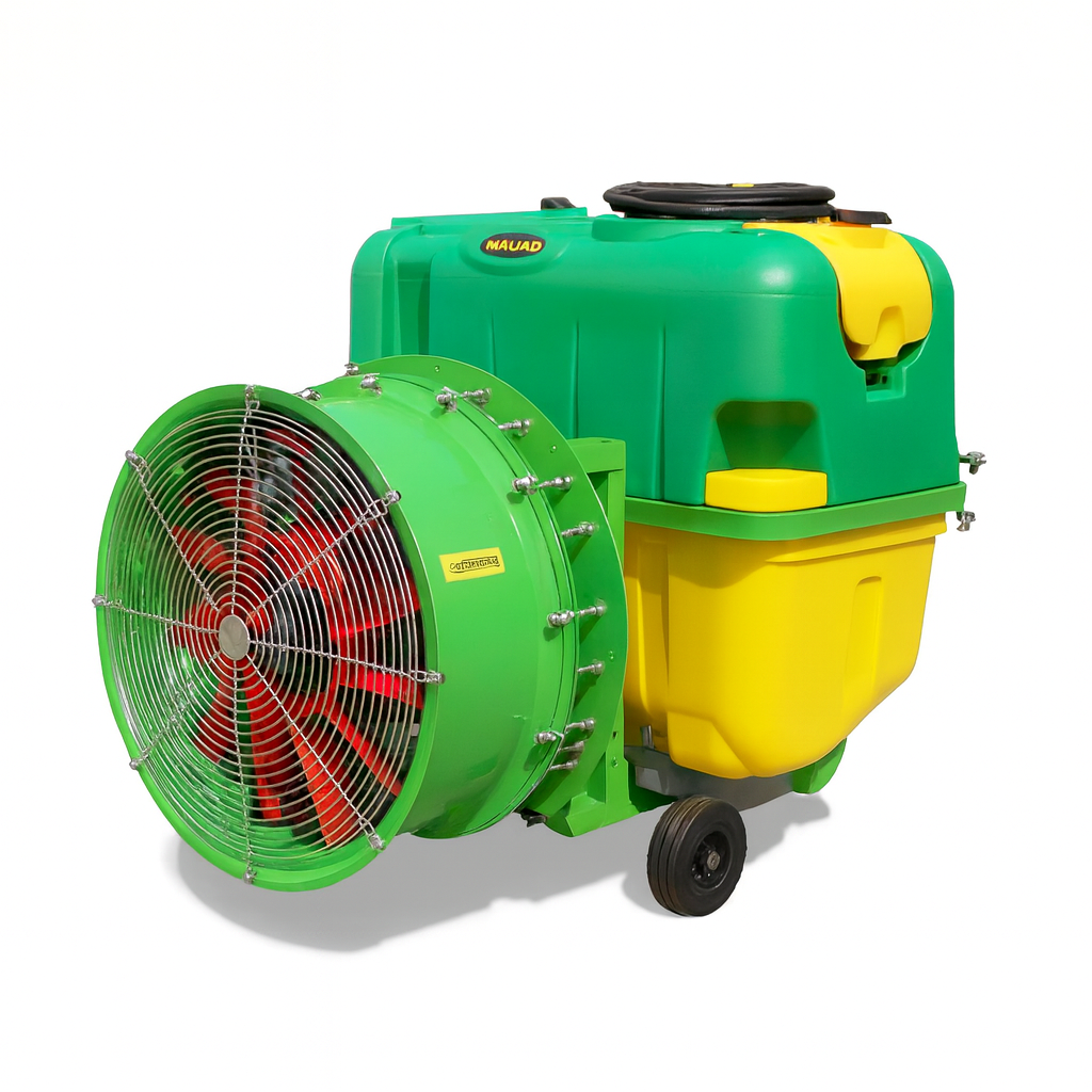 فن توربینی قدرتمند: فن توربینی با قطر ۴۰۰-۵۰۰ میلیمتر برای جریان هوای قوی، نفوذ عمیق و پاشش دقیق در محیطهای باغی (عرض پاشش تا ۸-۱۲ متر).