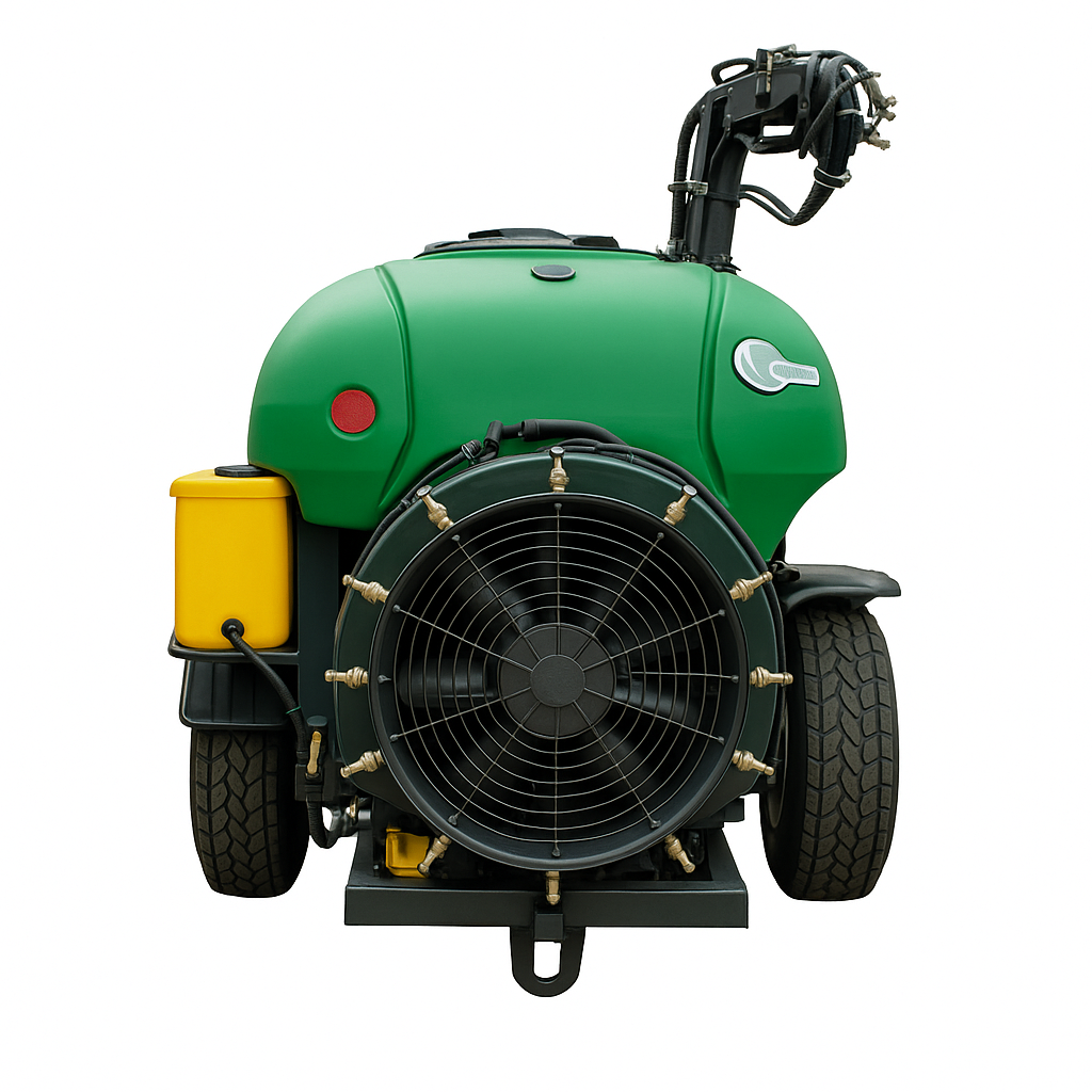 • پاشش یکنواخت و دقیق: فن توربولاینر ۴۵۰ میلی‌متری، توزیع سم را بهینه کرده و پوشش کامل محصولات بلند و متراکم را تضمین می‌کند.