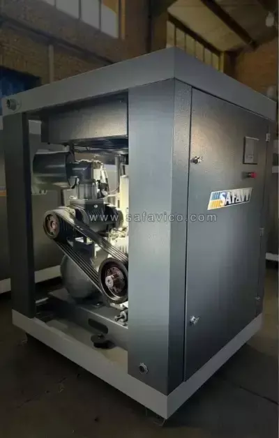 در این مدل از الکتروموتور سهفاز با توان 11 کیلووات (معادل 15 اسب بخار) استفاده شده که با ولتاژ ۳۸۰ ولت و فرکانس ۵۰ هرتز کار میکند. قدرت بالا و طراحی اصولی دستگاه، امکان تولید دبی هوای فشرده با ظرفیت بالا را فراهم کرده است:
