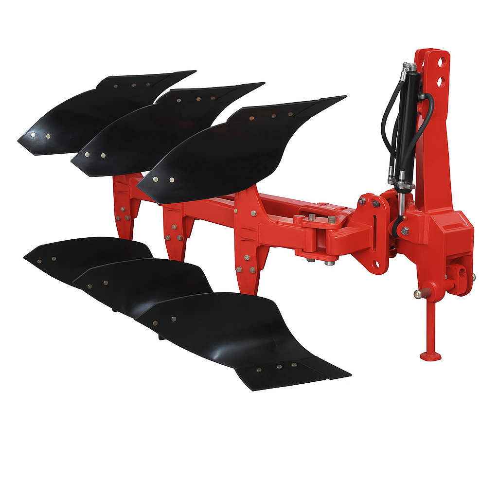 طراحی دوطرفه (۱+۲): یک خیش اولیه برای شخم مقدماتی و دو خیش تکمیلی برای شخم پیوسته در هر دو جهت بدون نیاز به چرخش تراکتور.