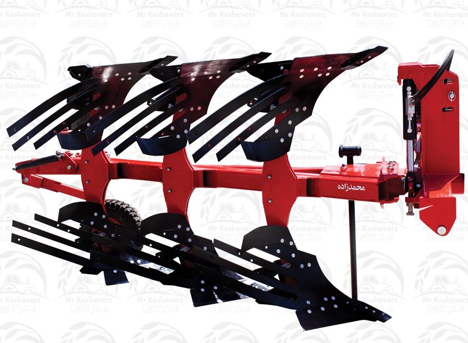 سیستم هیدرولیکی: تنظیم دقیق و آسان عمق شخم تا ۳۰ سانتیمتر و تغییر جهت تیغهها از داخل کابین تراکتور برای کاربری ساده.