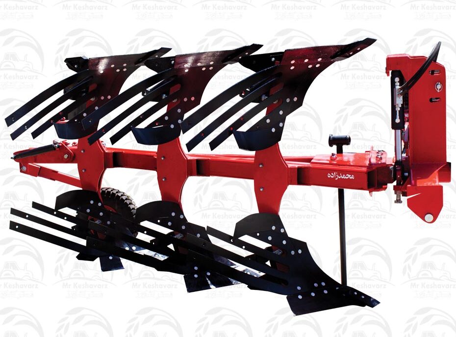 طراحی دوطرفه (۱+۲): یک خیش اولیه برای شخم مقدماتی و دو خیش تکمیلی برای شخم پیوسته در هر دو جهت بدون نیاز به چرخش تراکتور.
